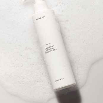 Bálsamo espumoso de acción profunda. Limpieza diaria, incluso para pieles reactivas y sensibles. Para realizar doble limpieza: utiliza primero un limpiador oleoso, como la Manteca Primera Limpieza Arturo Alba.