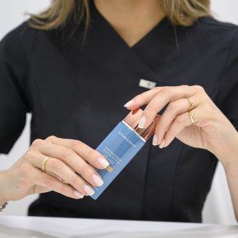 Aplicar sobre las yemas de dos dedos y frotar suavemente para liberar y activar los pigmentos encapsulados. El tono irá adaptándose según se vaya aplicando sobre el rostro y dejando de ser blanco, unificando el tono de la piel.